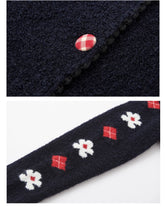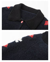 A retro-inspired cardigan crafted with intricate floral jacquard detailing and a refined lapel neckline. The textured knit adds depth and visual richness, while the structured yet soft silhouette offers both comfort and elegance. Designed for versatile styling, this piece transitions effortlessly from casual layering to more polished looks, making it a standout wardrobe essential with a touch of vintage charm.