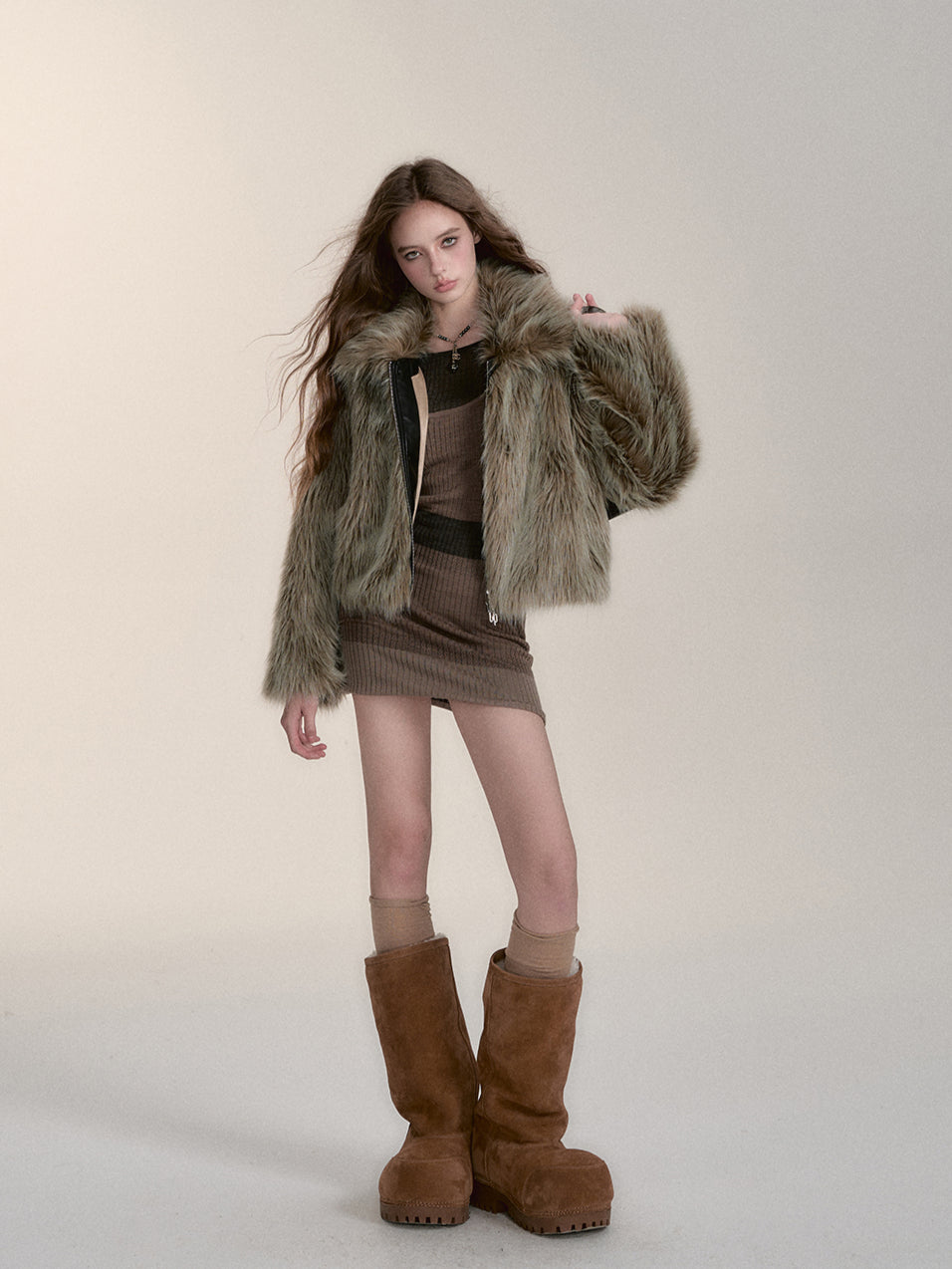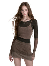 This design combines a striped knit sweater with a layered structure that mimics a two-piece outfit, using a hem + shoulder strap to create a stylish layered look. The silhouette enhances body shape, while the structured knit fabric offers comfort and elegance for autumn and winter.