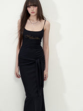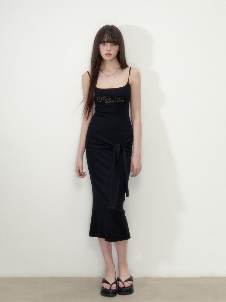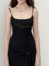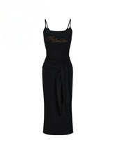 A fashion-forward yet practical tank dress with golden studded letters creating a visual focal point.