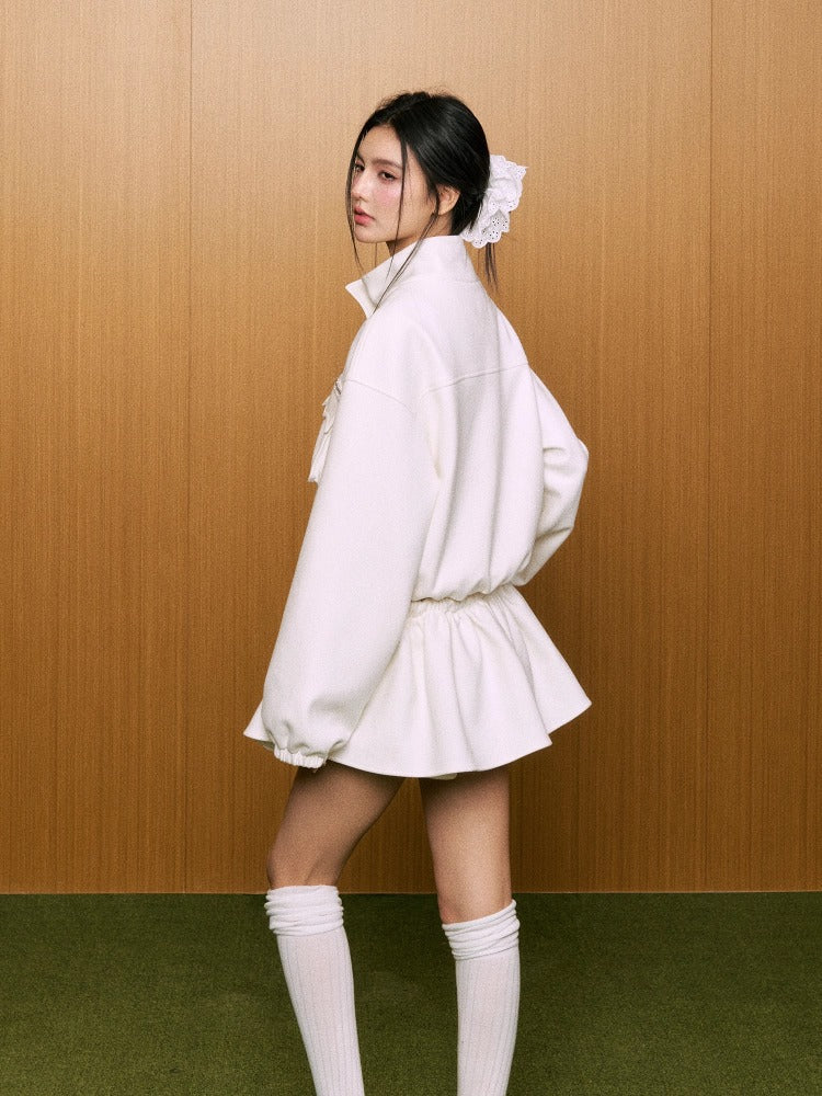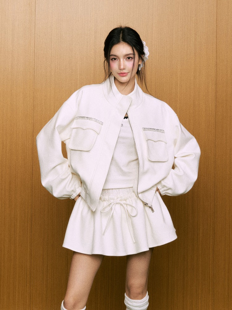 Suede Double-Pocket Jacket & Skirt Set - CHINASQUAD