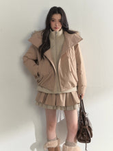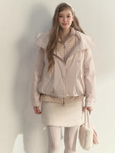 Khaki & Pink Double-Breasted Layered Down Jacket