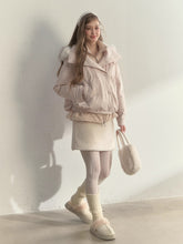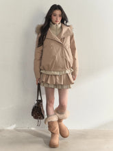 Say goodbye to bulky winter looks with this effortlessly stylish two-in-one down jacket. Combining the elegance of a trench coat silhouette with the warmth of premium down, it blends practicality and aesthetics seamlessly. Crafted from durable Dupan three-proof fabric, it offers excellent resistance to water, oil, and stains while maintaining a smooth, refined texture. The jacket features a diagonal weave for subtle dimension and a detachable hood for added wind protection and warmth. The soft faux-fur collar enhances coziness and adds a refined touch to the neckline. Dropped sleeves create a relaxed yet structured silhouette, while the double-breasted floral buttons bring out a nostalgic vintage charm. Lined with a delicate twill fabric and filled with 90% high-quality white duck down, this jacket provides both style and superior warmth.