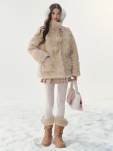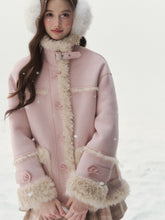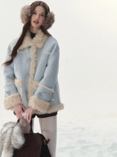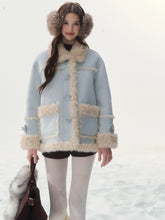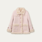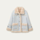 A cozy, warm reversible faux-shearling coat designed in soft pink and baby blue tones. The plush texture and relaxed silhouette offer a stylish yet functional winter outerwear option, giving two looks in one piece. Eco-friendly faux fur provides both comfort and a refined seasonal aesthetic.