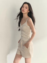Crafted from premium knit fabric, this camisole blends soft, skin-friendly comfort with delicate ribbed texture for an effortlessly refined touch. Every inch feels light and smooth, like spring clouds brushing against the skin. The close-fitting yet flexible silhouette highlights natural curves without constraint. Featuring a graceful crossover V-neck design, it strikes the perfect balance between romance and sophistication, flattering the neckline while adding subtle allure. The custom satin logo label infuses elegance and identity, merging silky softness with brand refinement. Romantic at its core, this piece captures individuality and timeless charm — a poetic layering essential for autumn and winter.