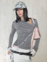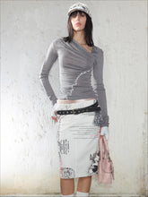 A refined and feminine fitted long-sleeve base top from 2th Desire, featuring an irregular cut and elegant lace patchwork detailing. The design accentuates the neckline and side pleats, creating a graceful silhouette with a soft stretch texture. Crafted from a luxurious blend of Tencel and fine wool, it offers breathable comfort and subtle elasticity — perfect for layering or wearing alone for a polished, romantic look.