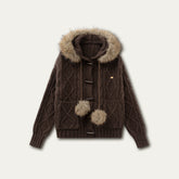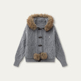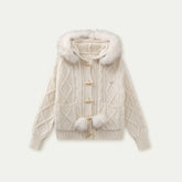 A luxurious cable-knit sweater crafted from 100% premium wool, designed to deliver warmth, softness, and timeless sophistication. The textured knit pattern adds depth and dimension, while the raccoon fur detail brings a touch of refined elegance. Perfect for layering in winter, this piece combines comfort and high-end craftsmanship for an effortlessly chic seasonal look.