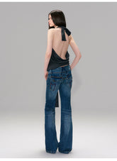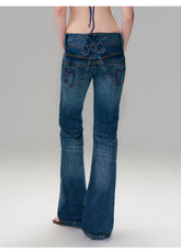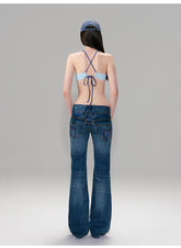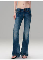 These vintage-inspired jeans feature a hand-finished washed effect that delivers a naturally worn-in, retro aesthetic. Designed with a low-rise waist and a slim fit through the hips, the silhouette subtly flares at the hem to elongate the legs and enhance proportions. The tailored cut highlights the body line while maintaining everyday comfort, creating a confident “hot-girl” denim look. Ideal for street styling or casual wear, these jeans balance bold attitude with refined vintage detailing.