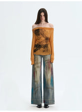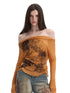 A retro-inspired knit top crafted from smooth lyocell fiber, designed with a flattering off-shoulder neckline that highlights the collarbone and shoulders. The softly fitted silhouette hugs the body with gentle stretch, creating a confident yet feminine look ideal for layering or wearing alone. Clean shoulder lines and a streamlined length enhance versatility, while the flexible bust and waist measurements ensure comfort and ease of movement. This piece balances vintage romance with modern sensuality, making it a refined essential for everyday styling.