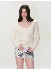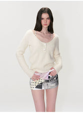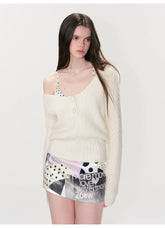 Designed with a nostalgic sensibility, this vintage-inspired cable-knit sweater features a soft, sculpted V-neckline and a gently fitted silhouette. The textured knit adds depth and warmth, while the refined proportions create a flattering, feminine shape without sacrificing comfort. With its cozy hand-feel and timeless appeal, this piece is perfect for everyday wear or layered styling through the cooler seasons.
