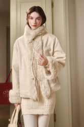 Warm, soft, and irresistibly chic — the “Travel Plan” jacket combines vintage charm with modern practicality. Made from plush shearling-effect fabric with a leather-and-fleece integrated design, it offers luxurious warmth and a velvety hand feel. The structured stand collar and clean tailoring enhance its sophisticated silhouette, while the cozy lining ensures maximum comfort. Perfect for winter adventures or city strolls, it balances timeless elegance with effortless wearability.