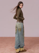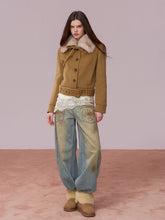 A relaxed, street-style denim piece featuring a washed old-effect finish, creating a retro worn-in texture. The exaggerated cargo-style pockets add structure and visual depth, while the 3D embroidery introduces a refined design element that elevates the casual silhouette. The straight-loose cutting provides comfort and easy styling—pair with knitwear, jackets, or T-shirts for an effortless urban winter look.