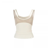 This fitted knit camisole features a clean, minimalist silhouette accented by contrast color detailing for a modern, design-driven look. Designed as a versatile inner layer or standalone top, it offers a slim, body-hugging fit that enhances natural curves while remaining comfortable. The refined knit texture and subtle wool blend make it an ideal spring essential, perfect for layering under jackets or styling on its own for a sleek, contemporary outfit.