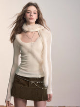 A luxurious two-piece knit ensemble featuring a fitted long-sleeve top and detachable fox-fur scarf. The design softly frames the neckline and shoulders with plush, genuine fur detailing that adds a refined, romantic edge. Crafted in a fine, lightweight knit, the top hugs the figure while providing gentle warmth and elegant texture contrast. Perfect for styling with skirts or wide-leg trousers, blending comfort, softness, and statement appeal for autumn and winter.