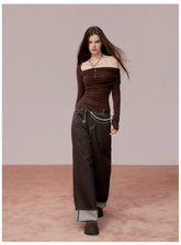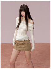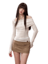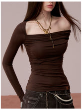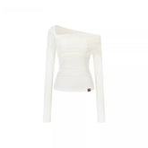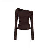 This design-forward long sleeve top features an irregular off-shoulder neckline that subtly reveals the shoulder for a modern, feminine silhouette. Crafted with a body-hugging fit, it contours the waist and enhances natural curves while maintaining comfort. The Lyocell-rich fabric delivers a smooth, breathable feel with a refined drape, making it an ideal spring essential that balances elegance and everyday versatility.