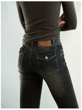A statement pair of jeans crafted with a heavy washed finish for a naturally worn-in, vintage appeal. Designed with a slim fit through the hips and thighs, this style subtly flares at the hem to elongate the leg line. Functional pocket detailing adds a utilitarian touch, while the structured yet comfortable denim makes it an effortless spring essential. Easy to dress up or down, these jeans deliver a confident, modern silhouette with everyday versatility.
