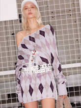 This vintage-inspired argyle knit dress merges classic patterns with modern versatility. Featuring a bold diamond-shaped argyle print, it exudes a retro preppy aesthetic while maintaining a contemporary edge. The dress is designed with a buttoned neckline and hem slit, both of which can be adjusted for different styling options. Made from a soft, stretch-knit fabric, it offers a comfortable and figure-flattering fit. The button detailing adds a subtle, sophisticated touch, making it perfect for layering or wearing as a statement piece.