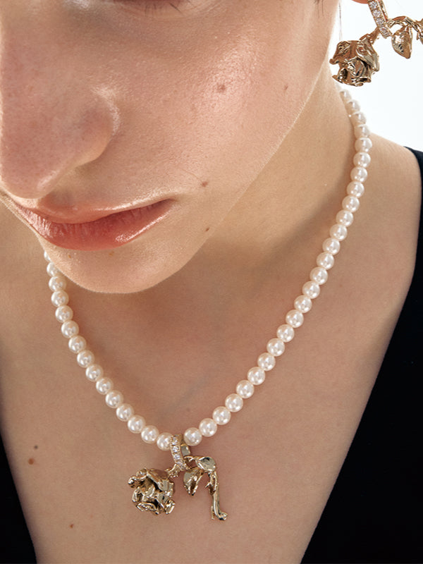Vintage Rose Pearl Necklace - CHINASQUAD