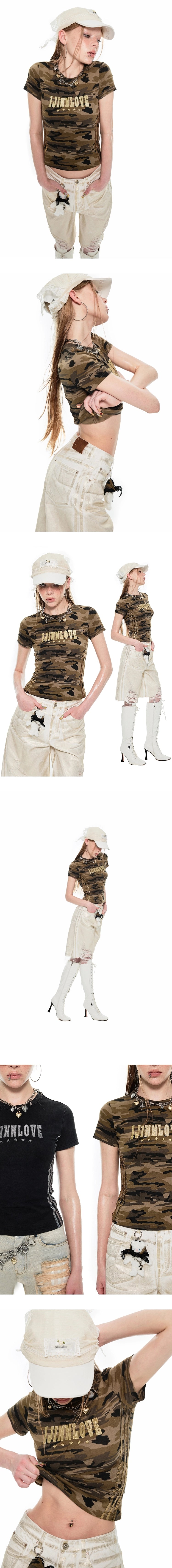Very spicy. American letter embroidery design on the front chest, high quality gold and silver silk embroidery thread, rich visual effect, exquisite details and texture. The waist side is designed with gold and silver fabric stickers, which integrates street sports elements and has a three-dimensional layering. JING chooses high quality stretch cotton knitted fabric, which feels delicate, comfortable and breathable. The whole garment is washed and worn out, with its own brushed texture and rich visual effects, making it easy to create a summer American Retro hot girl style.