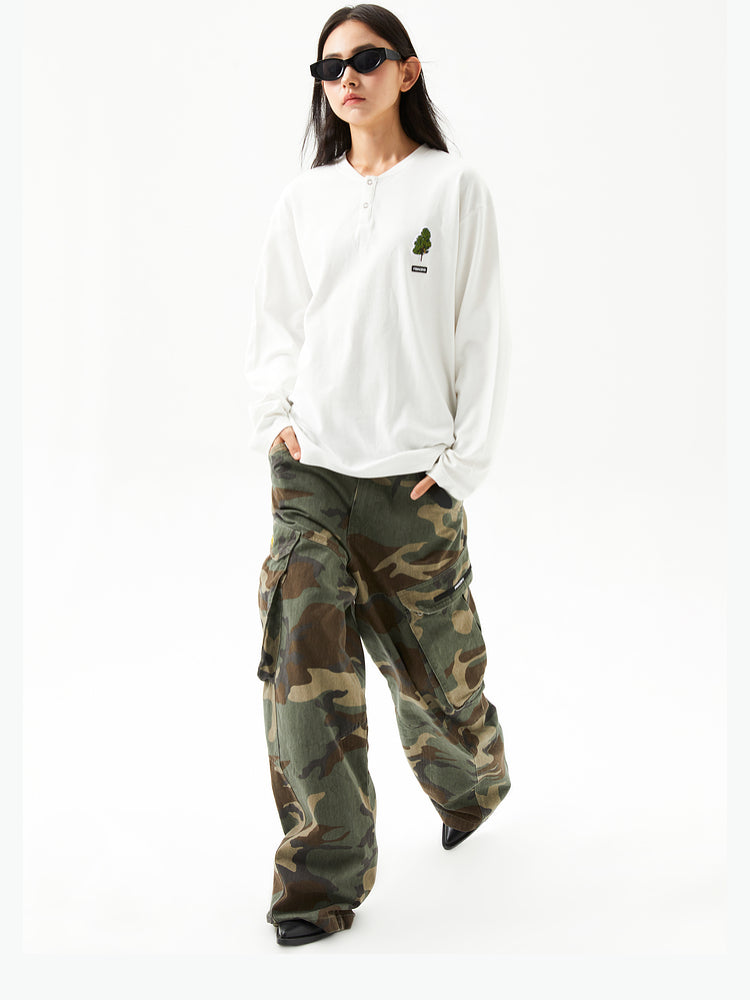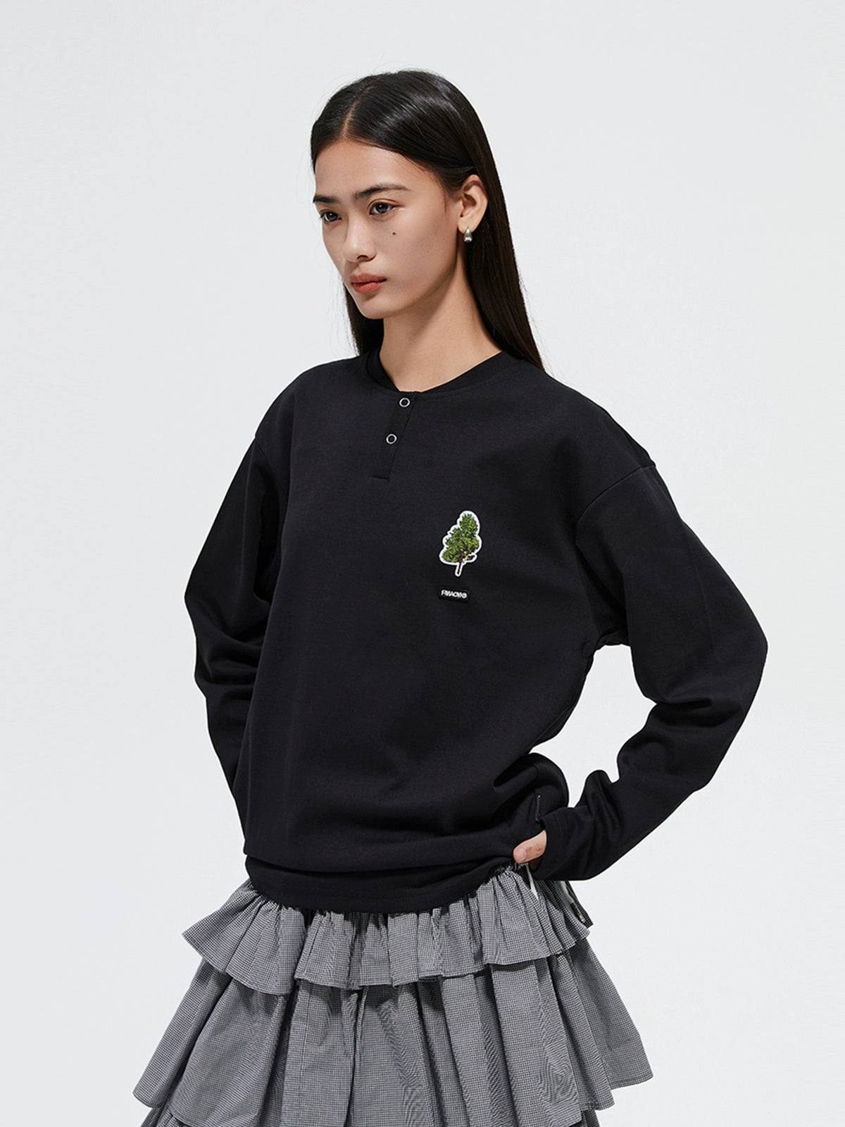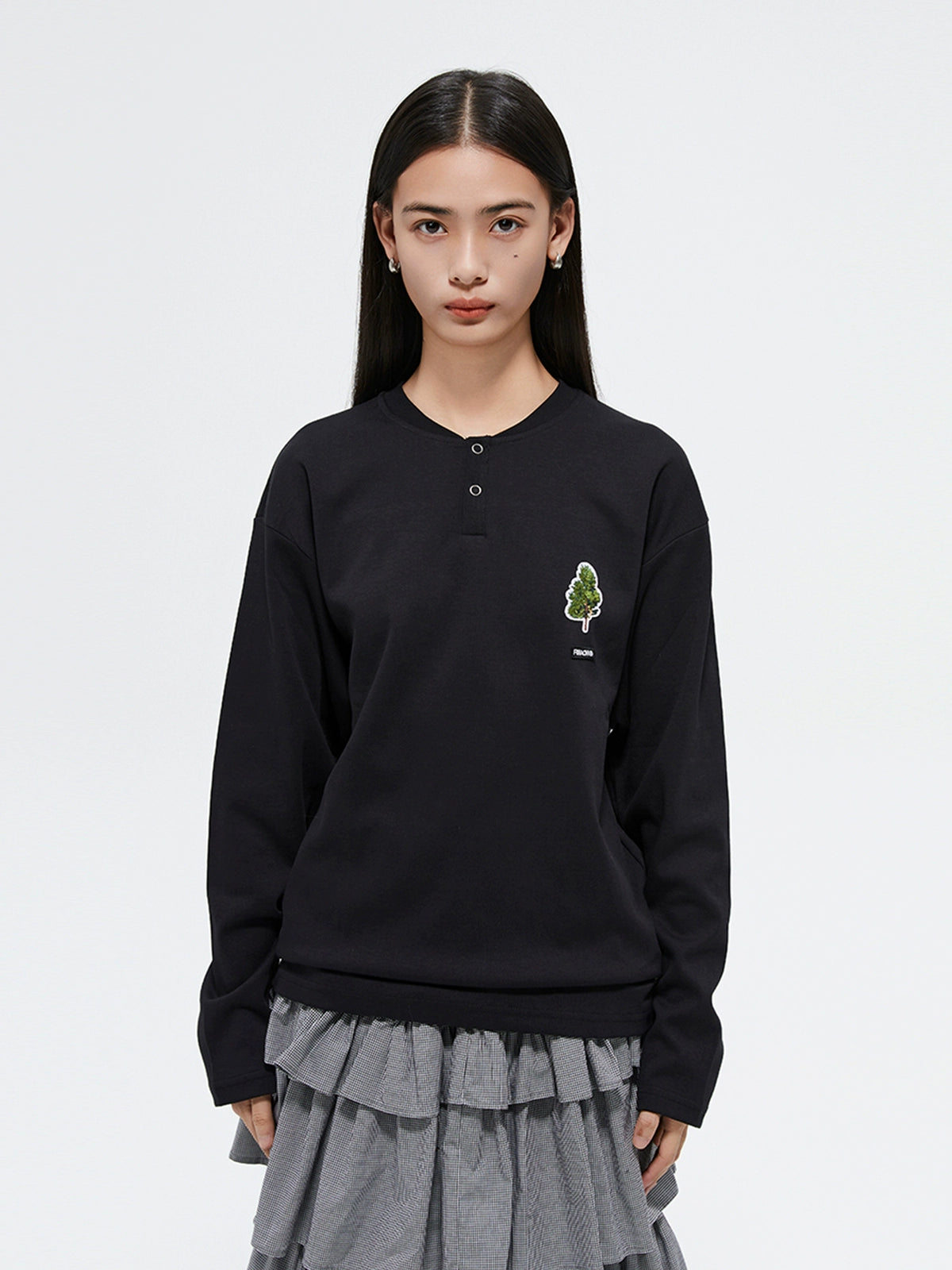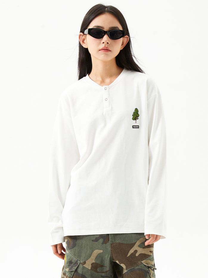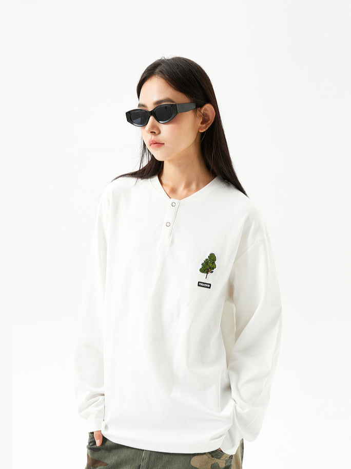 This T-shirt is crafted from high-quality blended fabric, designed to resist pilling and provide a soft and comfortable fit. The tailored slim fit accentuates the body's shape. The traditional Henley collar has been improved with refined five-claw buttons, elevating the overall sophistication of the garment. The chest features an exquisite "Tree" embroidered patch, adding a touch of playful symbolism, making it a perfect fit for casual everyday wear.