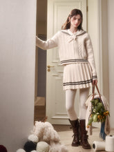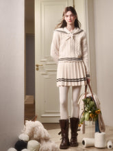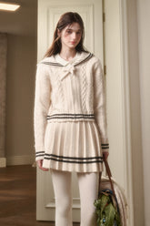 Elegant yet effortlessly cozy, the “White Philosophy” set blends classic preppy style with soft modern luxury. The cable-knit cardigan, crafted from a cloud-like wool blend, offers a structured yet relaxed silhouette, pairing seamlessly with the crisp pleated skirt for a harmonious balance of warmth and refinement. The set’s delicate texture and timeless white hue create a versatile look — perfect for transitioning from campus chic to urban sophistication.
