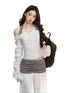 This stylish off-shoulder blouse reinterprets the classic silhouette with a subtle V-neck design that beautifully accentuates the face and neckline. The striped splicing detail adds depth and a layered visual effect, creating the illusion of a two-piece ensemble. Featuring curved cuff slits for added sophistication, this blouse blends effortless charm with contemporary elegance — perfect for pairing with high-waisted bottoms or tailored pants for a sleek, confident look.