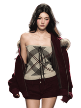 A delicate cropped knit tube top crafted from a soft wool-blend fabric with subtle heart-patterned yarn detailing. The slim-fit silhouette gently hugs the body, creating an elegant and feminine shape. Perfect for layering under jackets or cardigans during winter, this piece combines cozy texture with a touch of playful allure — embodying the pure yet modern “soft-girl” aesthetic.