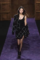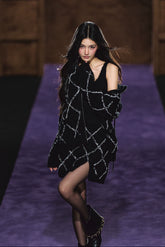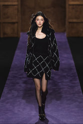 This sophisticated two-piece set combines a wool-blend hooded cardigan with a chic diamond-pattern knit dress. The cardigan features a relaxed silhouette, soft texture, and subtle structure, adding effortless elegance to everyday wear. The inner dress has a refined slim fit with a delicate knit texture, perfect for layering or wearing alone. Together, they create a modern yet timeless look suitable for both casual outings and elevated occasions.