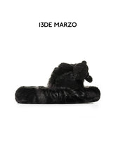 Cozy and stylish furry slippers featuring a detachable 3D doll detail. Designed for both indoor comfort and casual outdoor wear, combining cuteness with convenience in a versatile slip-on style.