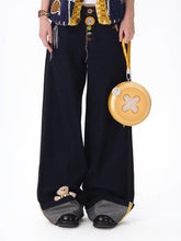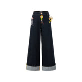 A unisex pair of wide-leg denim trousers featuring playful “tailor bear” detailing, blending casual character with a relaxed silhouette. Crafted from pure cotton denim, the pants offer a soft, breathable feel with a structured drape. Perfect for autumn–winter styling, these trousers balance comfort and personality for everyday streetwear looks.