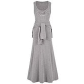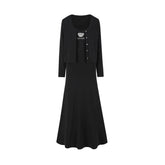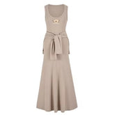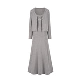 Waist-Tie Cardigan Two-Piece Long Dress Set
