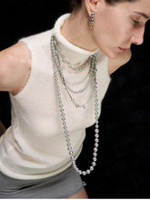 This minimalist yet fashion-forward long necklace features a silver-tone finish paired with delicate pearl accents.  Designed with a modern aesthetic, it can be wrapped around the neck twice to create a layered look, adding depth and elegance to everyday styling.  The piece emphasizes balance, versatility, and understated luxury, making it suitable for both casual wear and refined outfits.  A special plating process enhances durability while ensuring skin-friendly comfort, making it suitable for sensitive skin.