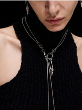 A punk-inspired, original-design necklace featuring a paperclip-style structure paired with a sleek herringbone/snake-chain look. Designed with an adjustable pull-slider closure, it allows flexible length styling—wear it as a close choker or a longer statement piece for layered outfits. Finished in a platinum-tone color and made with a special plating process to help preserve jewelry quality, offering comfortable, skin-friendly wear suitable for sensitive skin.