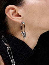 An original designer-style pair of punk-inspired stud earrings featuring a paperclip-inspired outline and a sleek herringbone element for a sharp, modern look. Finished in a platinum-tone color, they’re made to add subtle edge and structure to everyday styling while staying easy to pair with any outfit. Crafted with a special finishing process to help maintain jewelry quality and provide comfortable, skin-friendly wear.