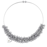 A stylish, modern choker featuring polished silver-tone beads paired with a delicate heart charm. Its clean, minimalist silhouette adds a subtle statement to any outfit, making it easy to style for both casual and refined looks. Crafted with a smooth, thick K-plated copper alloy finish, it provides a comfortable fit and a refined metallic shine.