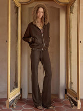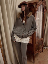 This two-piece casual set features a relaxed American streetwear aesthetic. The hoodie is designed with a plush faux fur-trimmed hood, batwing sleeves, and rivet detailing for a bold, edgy look. The loose silhouette offers comfort and layering versatility. Paired with matching drawstring waist pants, the subtle flared leg cut elongates the proportions while maintaining an easy, everyday feel. Suitable for casual outings, lounging, or styled as a coordinated statement set.