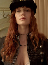 This short canvas jacket draws inspiration from classic Napoleonic tailoring, featuring a structured stand collar and distinctive double-breasted button design. Crafted with a subtly distressed finish, it blends vintage military aesthetics with modern street style. The fitted silhouette enhances structure while maintaining everyday wearability, making it an ideal outer layer for transitional seasons. Versatile and statement-making, this jacket pairs effortlessly with casual or styled looks for a refined yet edgy appeal.