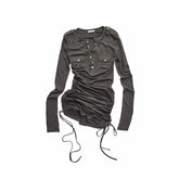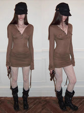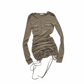 This American-inspired knit dress features a classic Henley neckline with a mini pocket detail, blending casual utility with feminine design. Crafted in a soft, stretch-infused fabric, it hugs the body for a sleek, curve-enhancing silhouette. The adjustable drawstring detail allows flexible styling and subtle ruching, creating a flattering hip-hugging effect. Designed for both comfort and edge, this long-sleeve knit dress works effortlessly for everyday wear, street styling, or elevated casual looks.