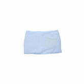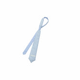 The A-line skirt echoes the jacket’s embroidery with a clean circular design, featuring contrasting pockets that combine practicality and style. The tie adds a youthful finish, balancing warmth and cuteness for a casual winter look full of energy.