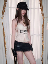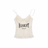 This French-inspired corset cami top features an all-over lace construction with a bold letter print, blending romantic detailing with a sharp, modern edge. Designed with a lace-up front and fishbone-style structure, it enhances and sculpts the upper body for a slim, defined silhouette. The fitted cut allows it to be worn confidently as an outer top or styled as a layering piece, making it suitable for streetwear looks, night-out styling, or statement outfits. A standout design that balances sensuality, structure, and fashion-forward attitude.