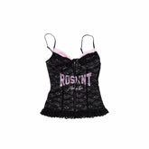 Lace-Up Letter Print Corset Camisole