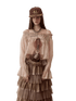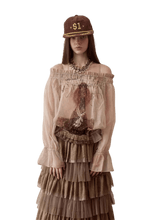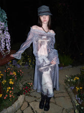 This statement chiffon top features a stylish off-shoulder neckline paired with a subtle sheer finish for a modern, alluring look. Designed with graphic print detailing inspired by the signature cat-and-dog motif, it brings playful character to a refined silhouette. The ruched construction adds texture and enhances the fit, while the relaxed drape and long sleeves create a balanced, feminine profile. Perfect for layering or wearing on its own, this piece works effortlessly for street styling, nights out, or elevated casual wear.