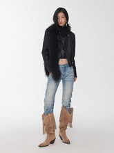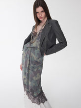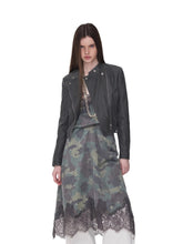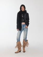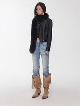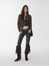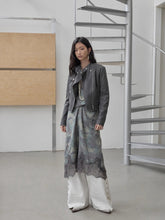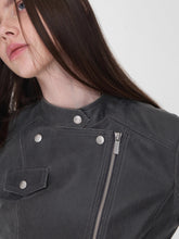 A modern reinterpretation of the classic biker silhouette, this fitted washed faux-leather jacket features a sharp cropped cut that enhances body proportions while exuding edgy individuality. The asymmetrical zip closure, multi-panel construction, and structured flap pockets with snap-button details add visual depth and a refined utilitarian aesthetic. Crafted from high-quality washed crack-textured faux leather, it undergoes a vintage water-wash treatment to reveal a distinctive aged texture and tactile richness. Finished with custom metallic hardware, this jacket balances ruggedness with sophistication — a statement piece that radiates timeless retro charm.