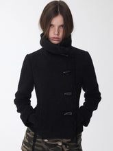 Wool Blend Horn Button High-neck Jacket