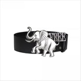 This 24ANS LTD belt features a bold elephant motif, symbolizing freedom, strength, and individuality. Designed with a sleek metal buckle and clean lines, it delivers a strong statement while remaining versatile for everyday styling. The PU leather strap offers a structured look with a modern edge, making it easy to pair with jeans, trousers, or layered over dresses for a street-forward accent. A distinctive accessory that reflects the brand’s expressive design language.