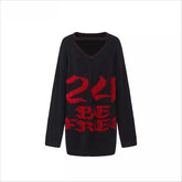 This 24ANS LTD knit sweater continues the brand’s commitment to bringing the bold “spicy girl” aesthetic into the mainstream. Designed with an eye-catching graphic print and an intentionally oversized silhouette, it delivers a strong street-style statement with effortless comfort. The dropped-shoulder cut and elongated sleeves create a relaxed, slouchy fit, making it ideal for layering or wearing on its own as a standout piece. Soft yet structured, it balances warmth, attitude, and everyday wearability.