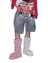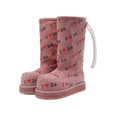 These runway snow boots from the 24ans 2025 collection feature a bold letter-print design paired with a structured yet cozy silhouette. Crafted with a suede-finish outer and a soft mesh lining, they deliver both visual impact and cold-weather comfort. The elevated shaft and clean proportions create a leg-lengthening effect, making them a standout runway-inspired winter essential.