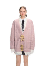 3D Plush Button Layered Knit Cardigan