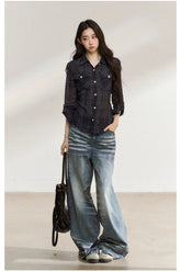 This shirt is crafted from a soft cotton-linen blend with a textured plaid weave, offering lightweight comfort and a refined everyday look. The structured shoulder design enhances the overall silhouette, while the adjustable back tie allows for easy transformation between a relaxed or cinched waistline. Combining casual charm with subtle tailoring, this asymmetric plaid shirt brings a touch of uniqueness to classic workwear or smart-casual styling.