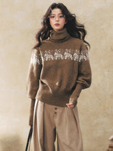 This winter-ready knit sweater features a vintage-inspired Christmas aesthetic with a relaxed, cozy silhouette. Designed with a high turtleneck and long sleeves, it blends retro charm with modern casual appeal. The dual-tone pattern adds visual depth, making it ideal for seasonal layering while maintaining a soft, comfortable wearing experience. Perfect for cold-weather styling with an effortless, laid-back mood.