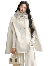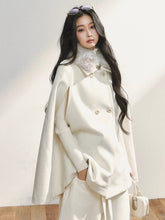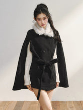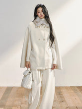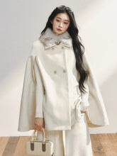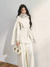 An exquisite double-faced wool cape coat designed with refined tailoring and a modern silhouette. This elegant outerwear piece exudes timeless sophistication with its structured drape, double-breasted front, and softly flared hem. The contrasting tones add depth and a couture touch, while the luxurious wool blend offers warmth and comfort. Perfect for layering over knitwear or dresses, this piece embodies effortless femininity and Parisian-inspired charm.